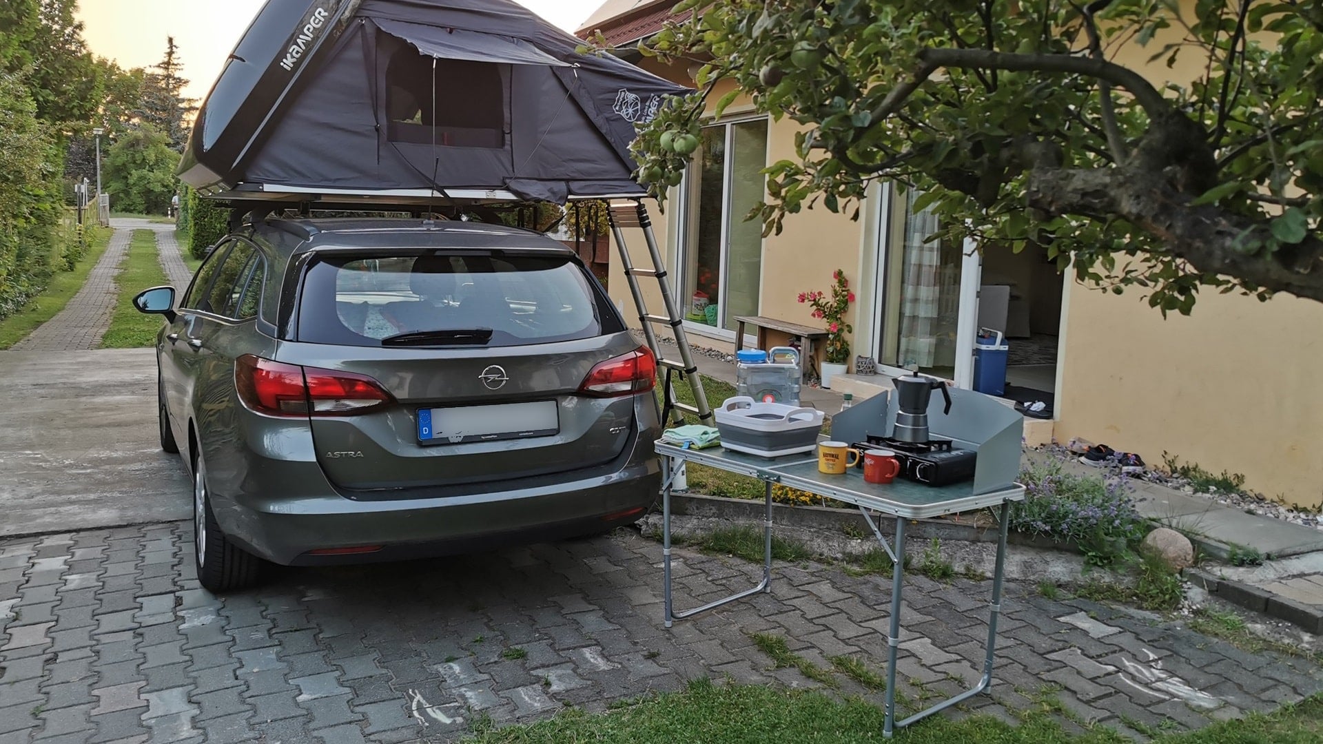 Camper-Einbauküchen bieten ein angenehmes Handling bei extrem geringer Aufbauzeit und auch einen hohen ästhetischen Wert. Neben den hohen Kosten haben sie allerdings auch den ein oder anderen unpraktischen Nachteil. Manche günstige Varianten werden zum Beispiel mit Spanngurten im Kofferraum fixiert, damit sie, wenn man sie nach hinten auszieht, nicht aufgrund des Übergewichts nach vorne kippen. Das sieht nicht nur hässlich aus, sondern ist auch störend beim Einladen und Positionieren der übrigen Gepäckstücke. Außerdem sind diese Boxen vergleichsweise groß und schwer. Man kann sie nicht mal eben rausnehmen, um die Kofferraum-Unterlage zur Reserveradmulde zu öffnen, die wir auch für das ein oder andere Gepäck nutzen.
