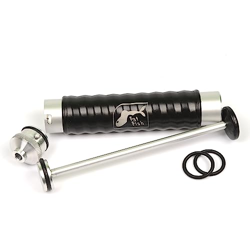 Hergestellt aus leichter und langlebiger Aluminium-Legierung, ist dieser Injektor für Plastisol (Flüssigkunststoff) perfekt geeignet. Er passt nahtlos zu allen FatFish Angelköderformen und den meisten Köderformen auf dem Markt. Mit einem Einspritzanschluss von 5/8 Zoll, dem Standarddurchmesser für Weichplastikködereinspritzdüsen, ermöglicht dieser Injektor gezielten Plastisolfluss. Er ist die optimale Wahl, um deine eigenen Angelköder zu kreieren.