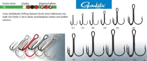 Gamakatsu Drillinge Treble 13, #10, nickel, 10 Stück