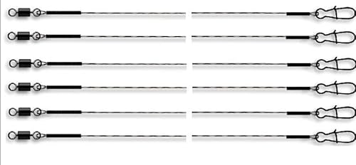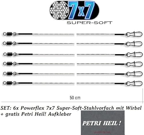 Jenzi Powerflex 7×7 Stahlvorfach, 9kg, 50cm, Tönnchenwirbel, Karabiner, 6 Stück
