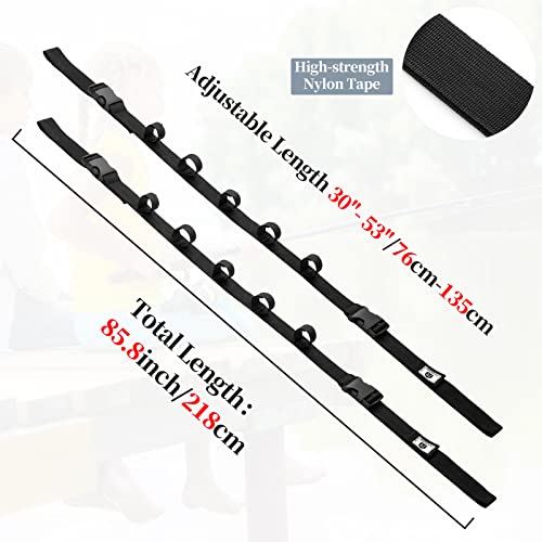 Gefertigt aus hochwertigem, strapazierfähigem Polyestermaterial, ist das System besonders robust, leicht und platzsparend. Es wird ganz einfach zwischen den Haltegriffen im Fahrzeug befestigt – ganz ohne Bohren. Die Länge ist flexibel einstellbar (ca. 76–137 cm), die Ruten werden per Klett sicher fixiert. So sind sie jederzeit griffbereit, ohne sich zu verheddern oder Schaden zu nehmen.