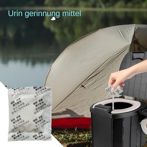 Päckchen aufreißen, Pulver direkt in den Beutel geben – fertig. Funktioniert mit allen gängigen Eimer-Toiletten, Urinflaschen oder Notfall-Toiletten im Auto.Platzsparend & leicht
