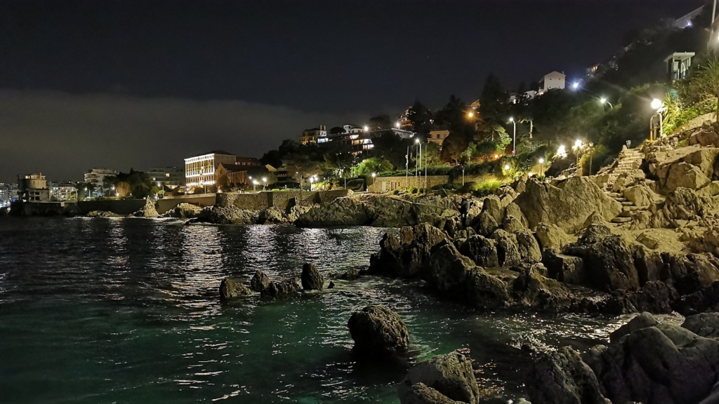 Wenn du mal selbst gefangenen Kalamar oder Tintenfisch zubereiten möchtest, dann bist du hier absolut richtig. Obwohl ich an jenem Abend Schneider blieb, hatte unser ortskundiger Profi fast täglich einen Fangerfolg. Besonders in den Wintermonaten spät am Abend hast du gute Chancen, da diese Tiere kälteres Wasser bevorzugen und nachtaktiv sind. Als Bonus kannst du ein ganz besonderes Flair genießen, das durch das Licht der Straßenlaternen auf den felsigen Uferbereichen erzeugt wird. Es hat ganz besondere Anziehungskraft, da es die raue Naturlandschaft mit dem idyllischen Stadtflair harmonisch vereint. Benutze ein spezielles Squid-Jig und eine Technik wie beim Faulenzen auf Zander. Bei etwas langsamerer Köderführung kannst du so einen Tintenfisch überlisten. Beim Kalamar jiggst du den Köder eher im Freiwasser als auf Grund. Von Frühling bis Herbst hast du hier gute Chancen, Meeräschen, Makrelen und Doraden zu fangen, insbesondere bei Flut, wenn das ufernahe Wasser tiefer ist und Nahrung angespült wird.