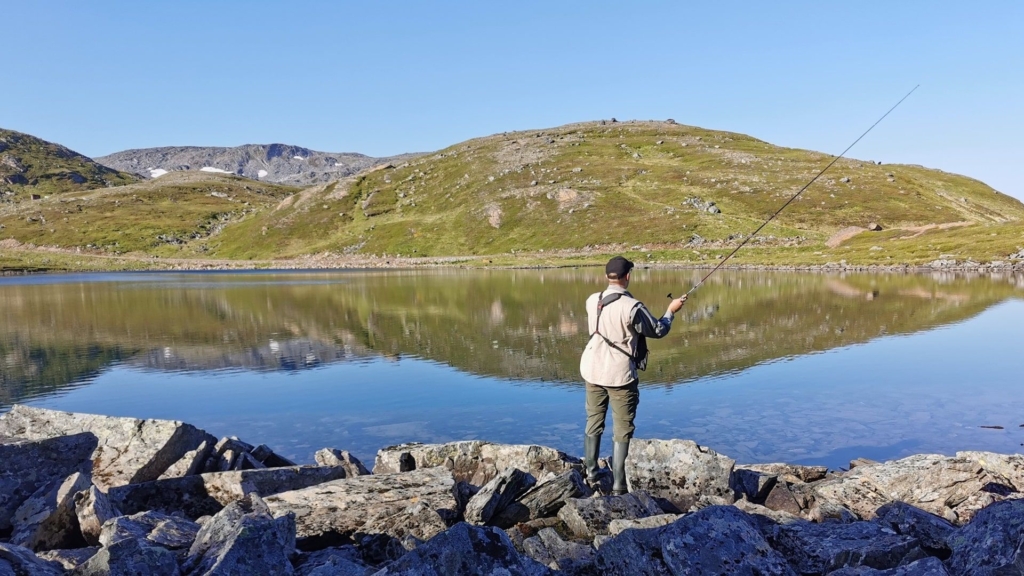 Ich wollte gerade den Spot wechseln, als ein ortsansässiger Angler an einem See nahe des Flughafens an mir vorbei radelte. Da er mich als Angler erkannte, hielt er an, um ein paar nette Worte zu wechseln. An jenem Tag war ich noch Schneider, weshalb er mitleidsvoll seinen Rucksack abnahm und seine Angelbox herauszog. Er selbst verbrachte gerade seinen letzten Urlaubstag beim Fischen. „Ich angele hier schon seit meiner Jugend. Aktiv fängt man die Forellen mit Wurm, den man ein paar Zentimeter hinter einem Tobi-Blinker laufen lässt“, ließ er mich wissen. „Komm, mein Freund, wir Angelkollegen müssen einander beistehen“, fügte er lächelnd hinzu, öffnete seine Box und schenkte mir eine Portion Rotwürmer und ein paar Einzelhaken, nachdem er gesehen hatte, dass ich nur mit Spinnern, Toby-Blinkern, Wobblern und Streamern bestückt war. Dankbar verabschiedete ich mich und setzte meinen Weg fort, um in den Bergseen nahe des Sportplatzes von Hammerfest zu angeln.