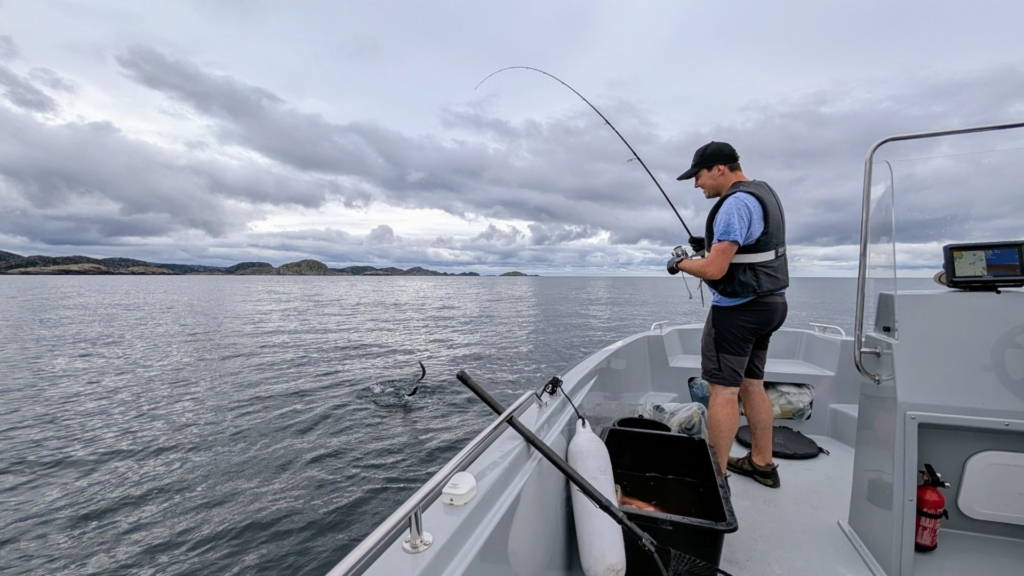 Zum Glück hatten wir noch eine zweite Urlaubshälfte in vertrauten Gefilden bei Lyngdal geplant. Nach einigen erfolglosen Würfen vom Ufer aus beschlossen wir, beim Bootsverleih unseres Vertrauens in Hausvikstranda bei Korshamn einen Offshore-Trip zu starten. Praktisch: Der Bootsverleih gehört zu einer schicken Ferienanlage, dessen Anbieter offiziell bei der norwegischen Fischereibehörde gemeldet ist – so lässt sich der Fang auch ganz legal für den Export anmelden.